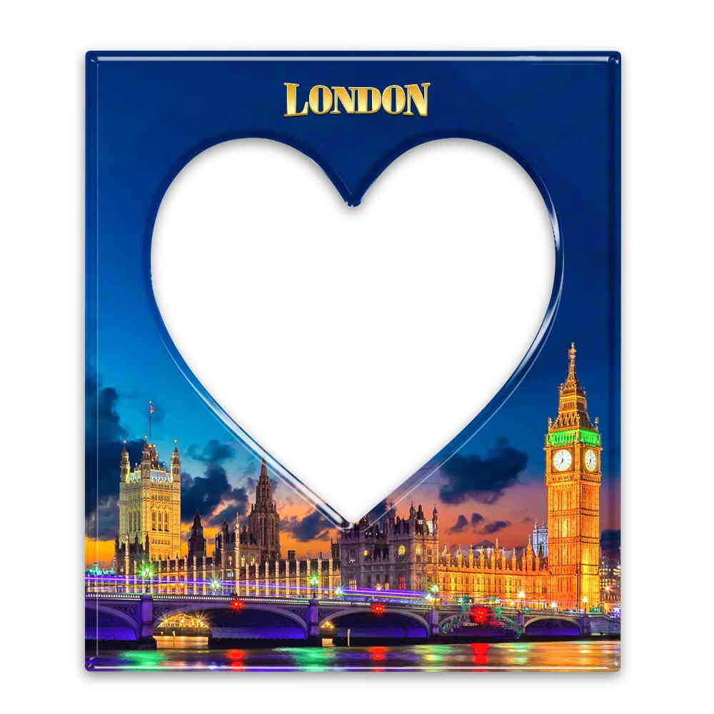 Capture your favorite memories of London with our charming London Heart-Shaped Photo Frame. This unique and stylish frame features a heart-shaped cutout against a stunning backdrop of Big Ben and the Houses of Parliament. Simply place your photo in the heart, and let the iconic London skyline add a touch of elegance to your display.