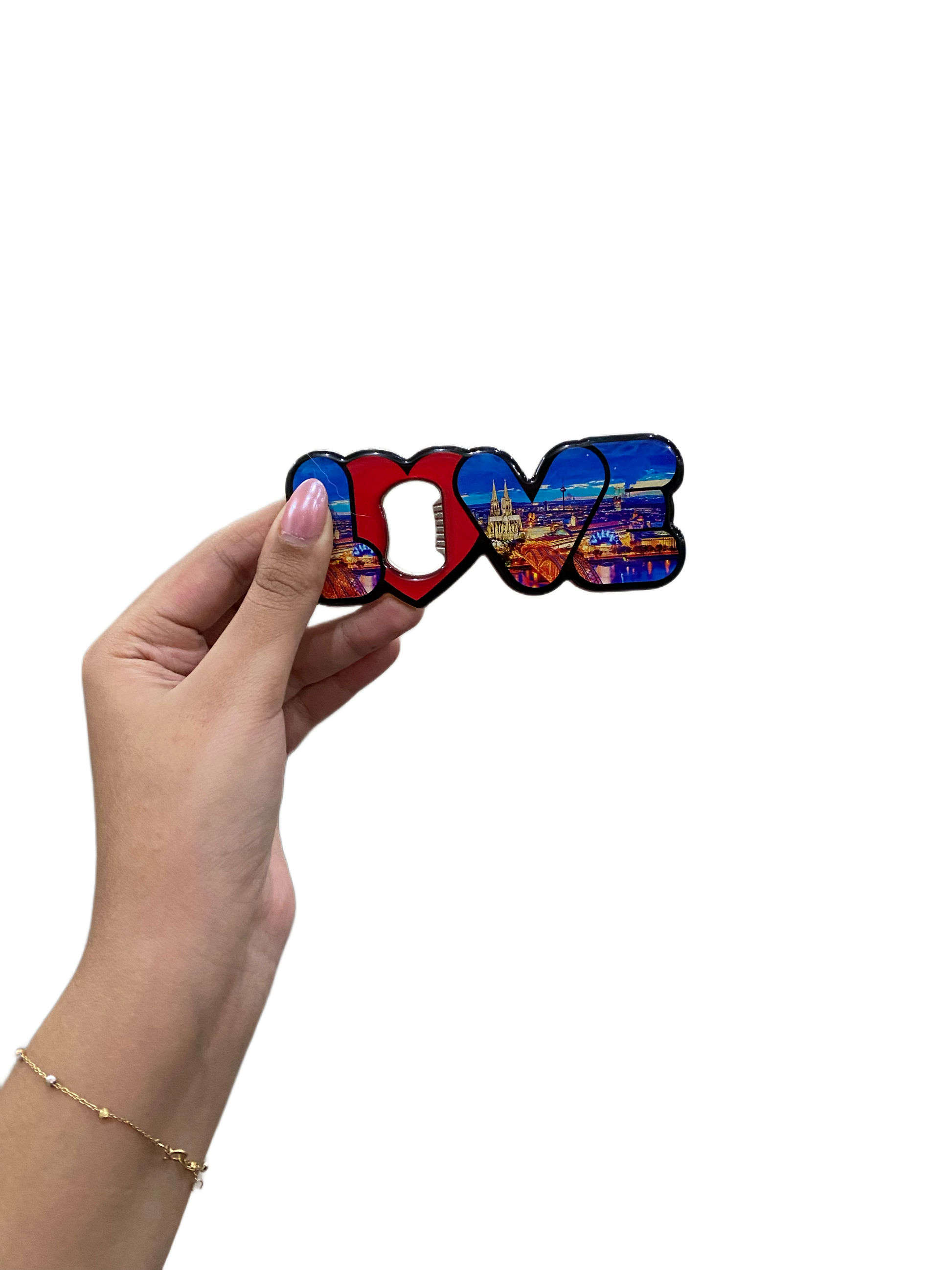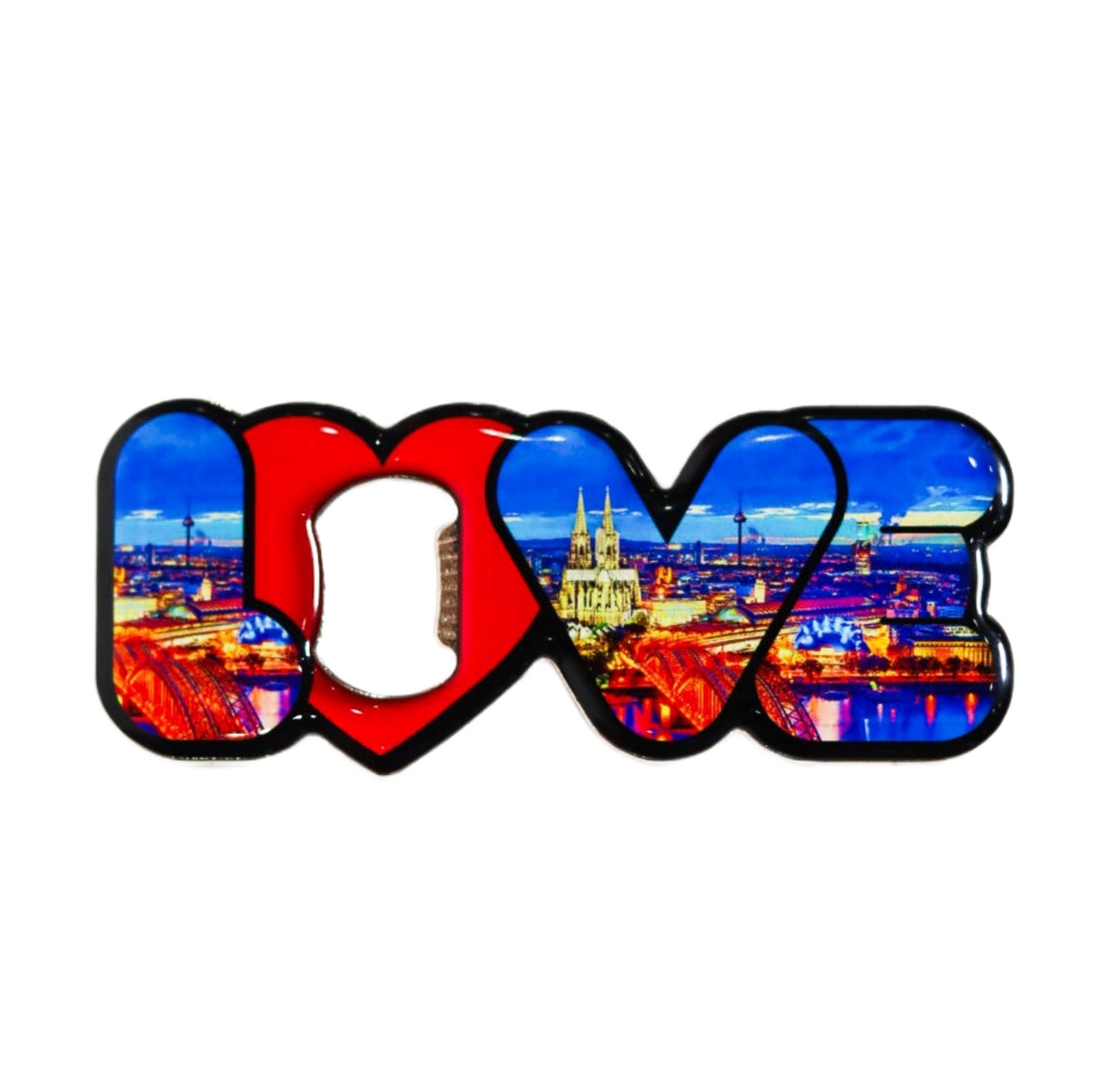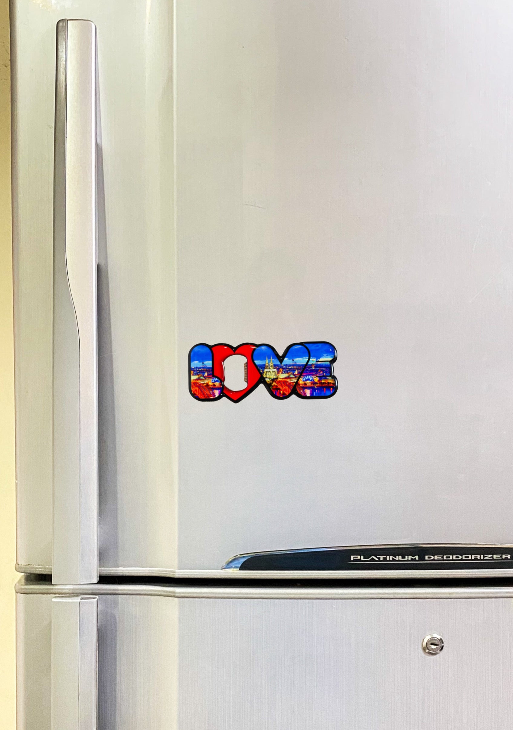 Elevate your home bar with the Magnetic Cologne Cityscape Bottle Opener. This exquisite bottle opener features a beautifully detailed depiction of Cologne’s iconic skyline, capturing the essence of this historic German city. The strong magnet on the back ensures it stays securely attached to your refrigerator or any metal surface, blending style with practicality. Perfect for effortlessly opening your favorite beverages while adding a touch of Cologne’s charm to your space, this bottle opener also makes a wonderful gift or keepsake for those who cherish the rich cultural heritage of Germany’s vibrant city.