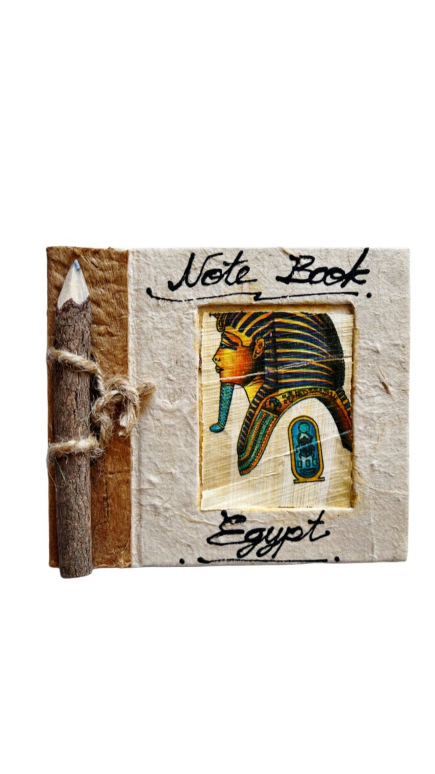Embrace the allure of ancient Egyptian royalty with our King Tutankhamun Handcrafted Papyrus Medium Notebook with Wooden Pen. Measuring 12 cm x 10 cm, this exquisite notebook showcases a detailed image of the iconic pharaoh King Tutankhamun, skillfully crafted on authentic papyrus paper. Perfect for writing, sketching, or as a decorative piece, this notebook beautifully combines functionality with a touch of history.